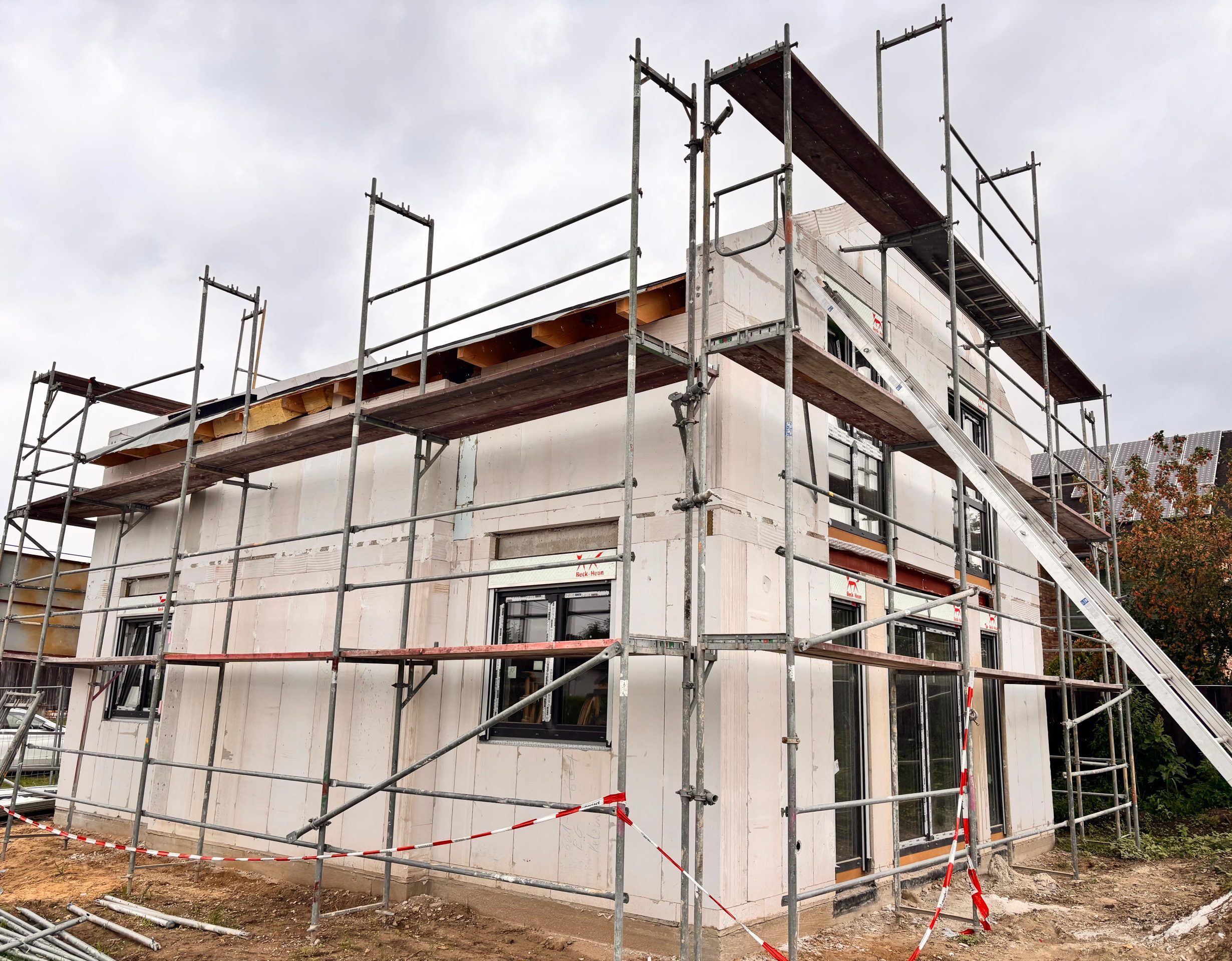Haus A ist ein modernes Einfamilienhaus, das derzeit im Rohbau entsteht. Es überzeugt durch zeitgemäße Architektur und eine durchdachte, offene Raumaufteilung – ideal für modernes Wohnen in ruhiger Lage.
